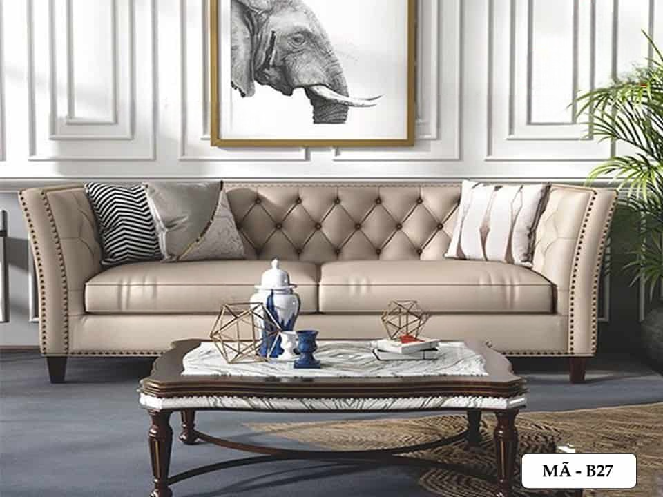 - Phong cách tân cổ điển: Kết hợp giữa nét đẹp cổ điển và hiện đại, sofa da có thiết kế tinh tế, đường nét mềm mại, màu sắc trang nhã như kem, be, xám. Chất liệu da có thể là da thật hoặc da công nghiệp.